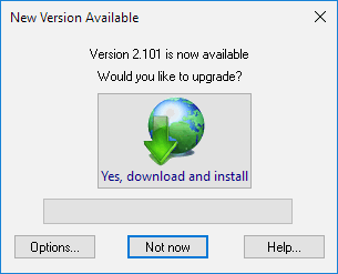 Click the Yes, download and install button to proceed with the upgrade. Or, the Options.. button will take you back to the Update Check Settings window.