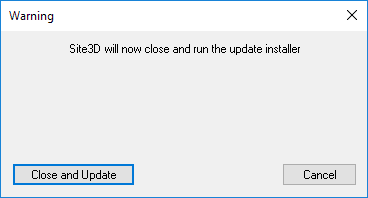 Note: Clicking Close and Update will close the program immediately. If you have an open project with unsaved changes that you want to keep, then click Cancel instead and save your work. You can restart the update process from the Help->Check for updates... menu option.